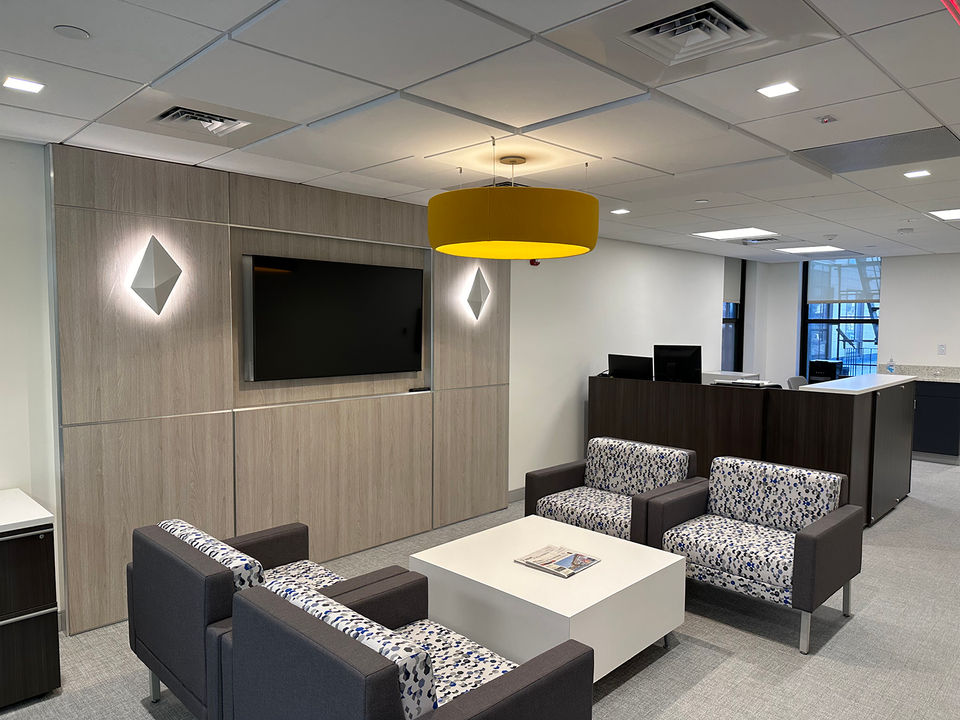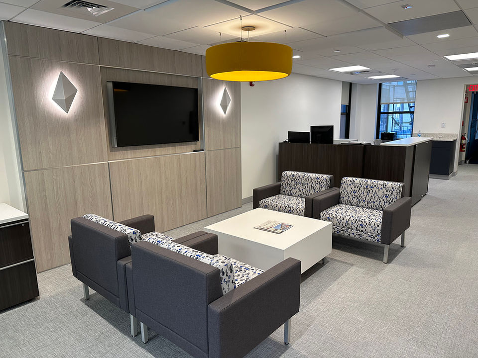 The project involved the gut renovation of a 5-story existing building to serve as the new headquarters for the City of Boston Credit Union. The scope included creating offices, conference rooms, a bank branch, an executive suite, workstations, a staff lounge, and a kitchenette. Extensive building upgrades were completed, including roofing and envelope improvements, all-new power distribution from the service point, a modern HVAC system, plumbing, and a Pre-Action fire protection system. The interior featured high-end finishes, custom casework, glass partitions, and fully installation of new FF&E throughout. The renovation also incorporated a new IT room to support operational needs, delivering a functional and sophisticated workspace.